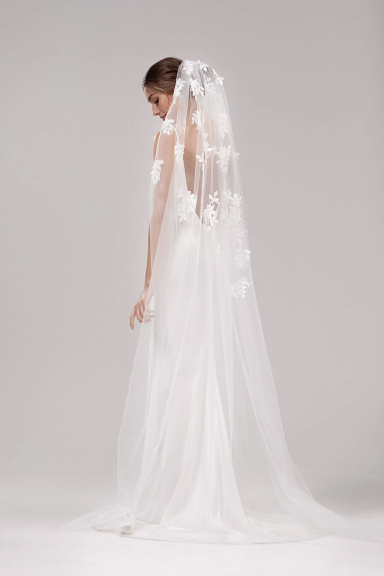 At Calèche Bridal House, we offer an exquisite collection of wedding veils designed to complement every bride’s unique style. From statement floral appliqué veils to timeless, simple blusher veils, our range is created to elevate your bridal look. Whether you’re seeking a dramatic statement piece or something delicate and understated, there’s a Calèche wedding veil for every bride.
