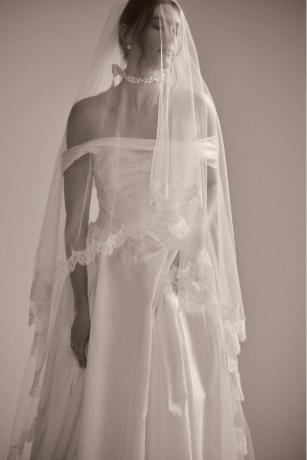Isabella perfectly balances structure and romance, with a corseted bodice that elegantly frames the shoulders and peaks at the waist. The lightweight taffeta skirt unfolds in soft, voluminous pleats, giving the gown an airy, cinematic presence. She is elegant, poised, and unforgettable.